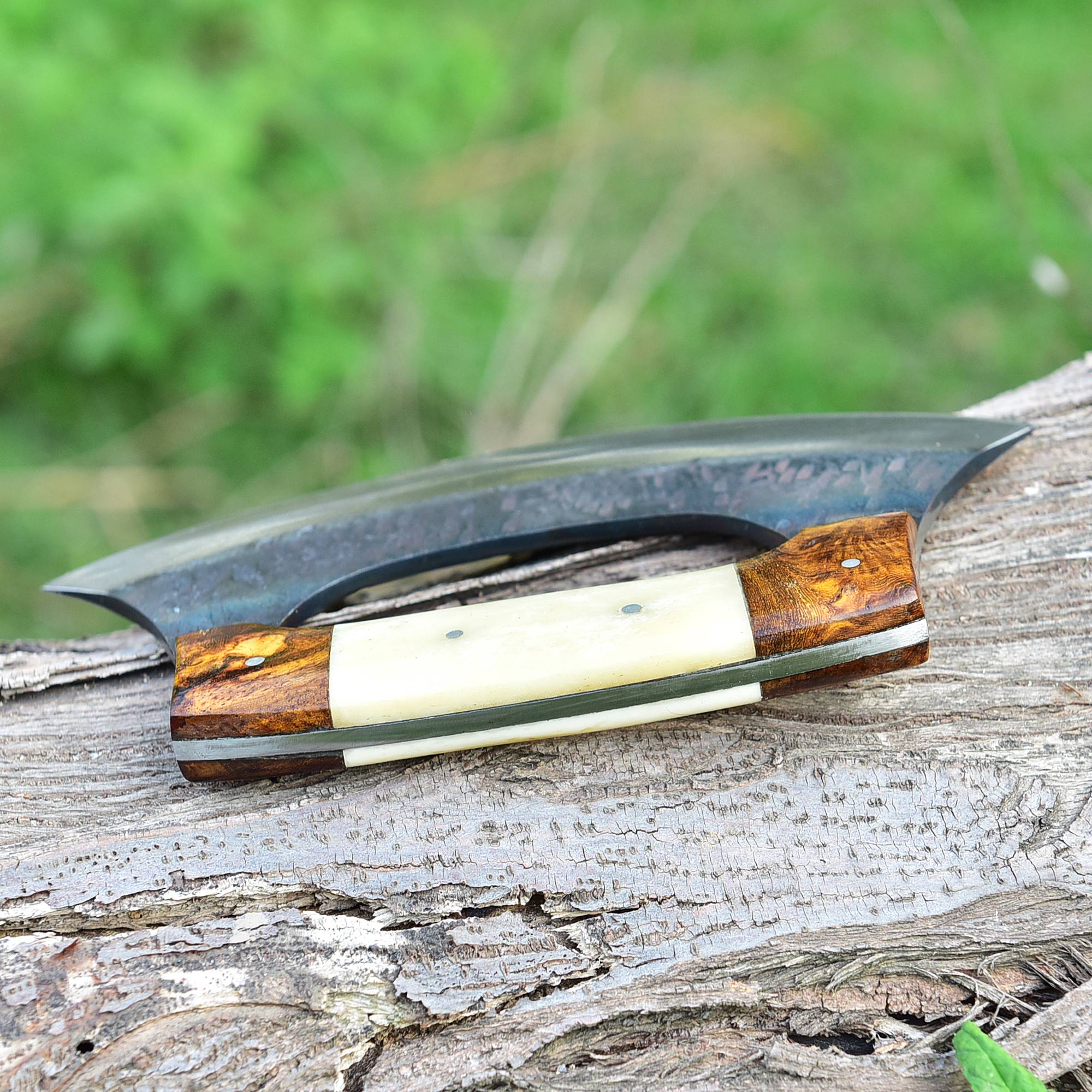 Introducing exquisite Handmade Carbon Steel Ulu Knife, a true masterpiece of craftsmanship. Its stunning Carbon steel blade, ergonomic rose wood handle, and unique rocker design make it a versatile tool for precision cutting, chopping, and mincing. Beyond the kitchen, it’s perfect for camping and more. Elevate your culinary experience with this fusion of tradition and modernity.