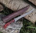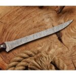Master your culinary artistry with our Damascus fillet knife. Its 13″ flexible blade excels in precision cuts for meat, poultry, and vegetables. Expertly crafted from Damascus steel and a wooden handle, this kitchen essential seamlessly transitions from butchery to precision slicing. The discerning choice for those who demand culinary excellence.