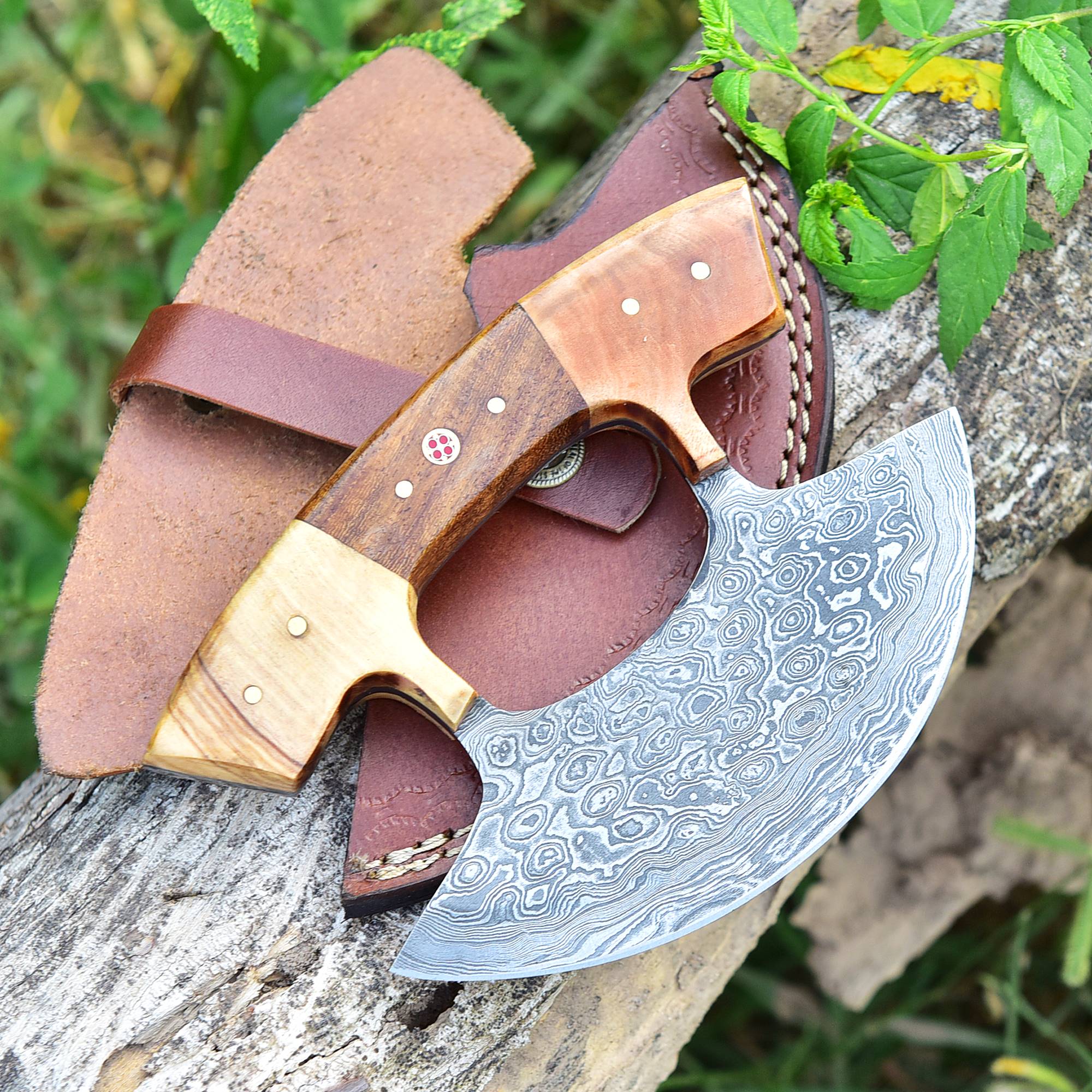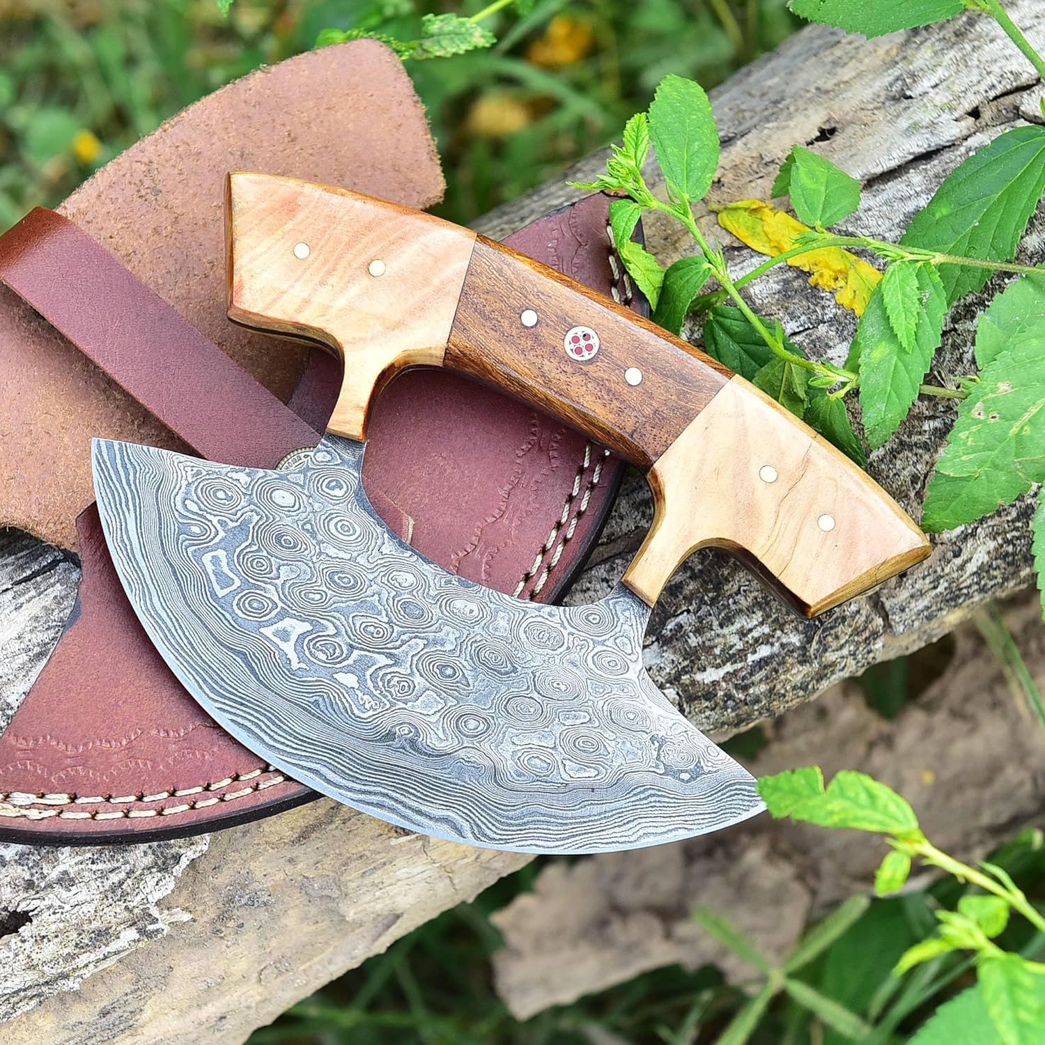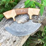 Introducing our exquisite Handmade Damascus Ulu Knife, a true masterpiece of craftsmanship. Its stunning Damascus steel blade, ergonomic wood handle, and unique rocker design make it a versatile tool for precision cutting, chopping, and mincing. Beyond the kitchen, it’s perfect for camping and more. Elevate your culinary experience with this fusion of tradition and modernity. Our Damascus Steel Ulu Knife is easy to clean and maintain. It is resistant to rust and corrosion, ensuring that it retains its sharpness and beauty over time. Additionally, it comes with a protective sheath for safe storage, prolonging its lifespan and keeping it readily accessible in your kitchen