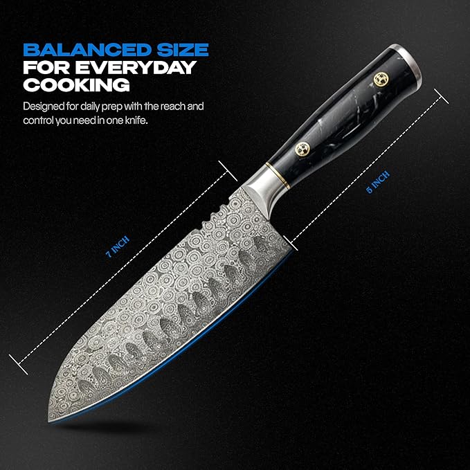• Designed for quick chopping, slicing, and dicing, this santoku knife excels in everyday cooking tasks and delivers smooth performance valued by kitchen knives and damascus chef knife users.