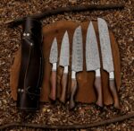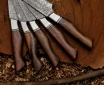 5 pcs Damascus kitchen knife set included, chefs’ knife, santoku knife, brisket bread knife, paring knife & carving knife.