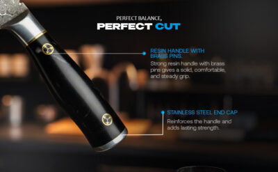 - The ergonomic resin handle with brass pins and stainless steel bolster gives this paring knife excellent balance, grip comfort, and steady finger control.