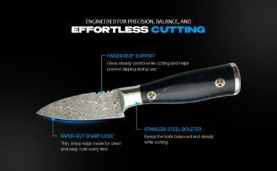 - Packed in a premium presentation box, this paring knife arrives protected and ready, making it a refined damascus knife for home kitchens or gifting.