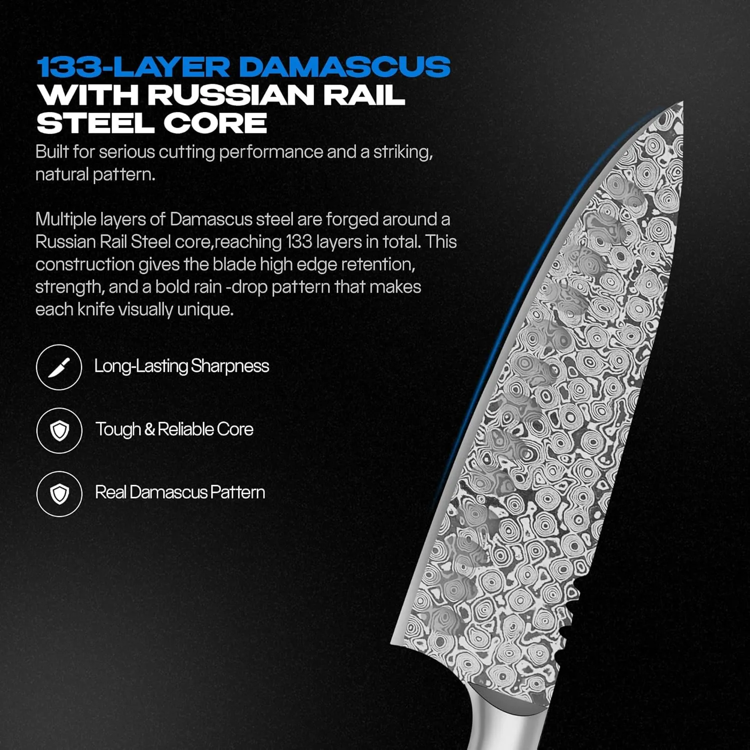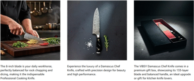 - This damascus knife is made with a durable 133-layer blade for strength and control, giving you a chef knife that stands apart from regular kitchen knives in daily cooking.